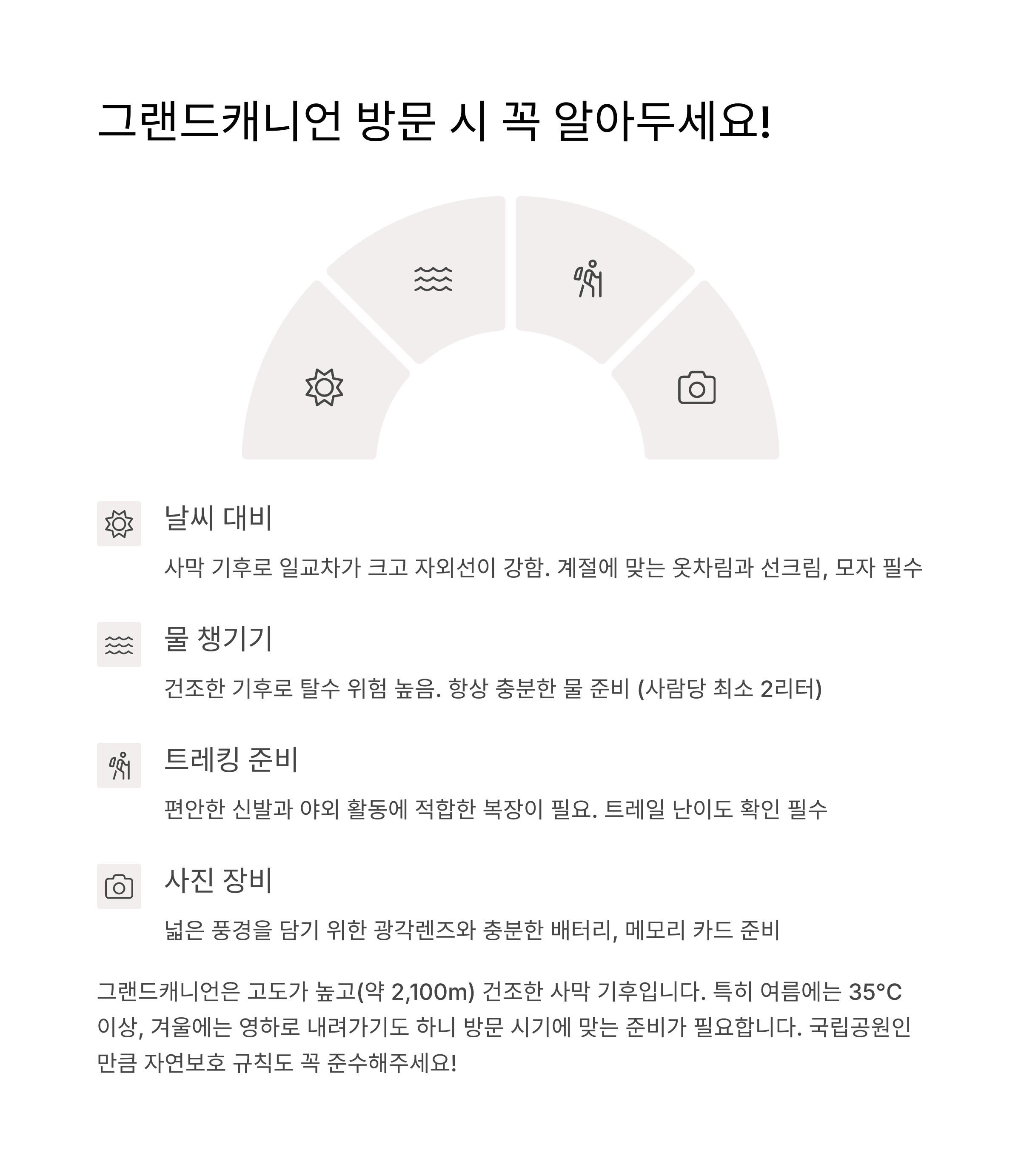 철저한 준비로 그랜드캐니언의 감동을 온전히 만끽하세요