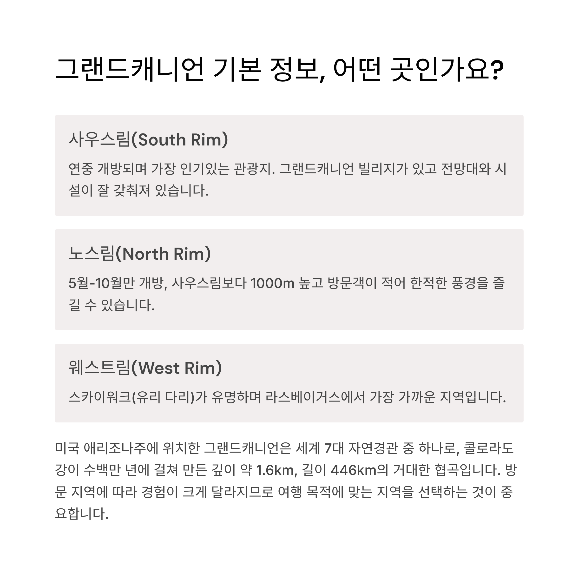 그랜드캐니언 기본 정보와 지역 소개