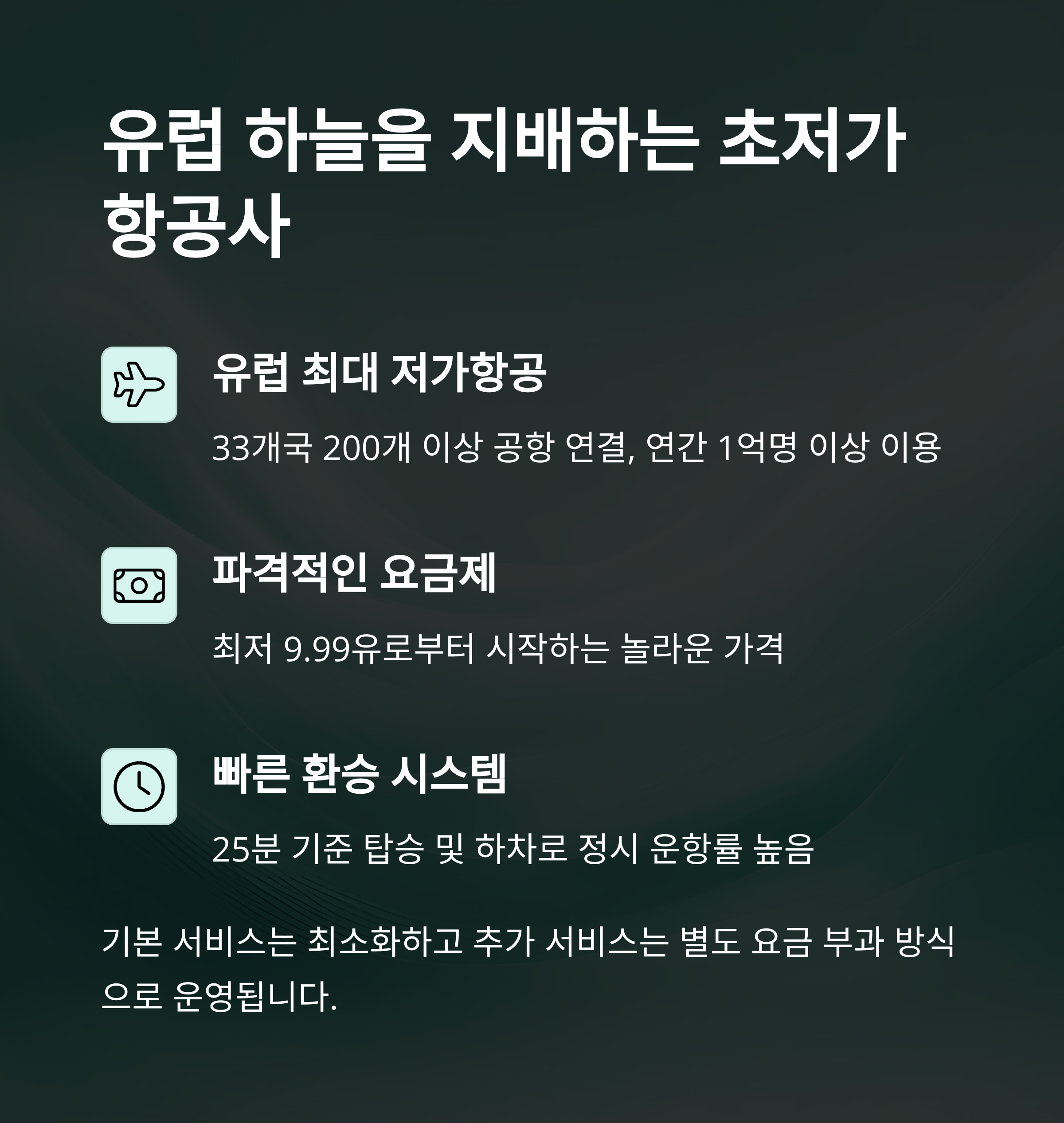 "극단적인 저가 항공권 가격"으로 유명하지만, 추가 요금이 많아 주의가 필요합니다