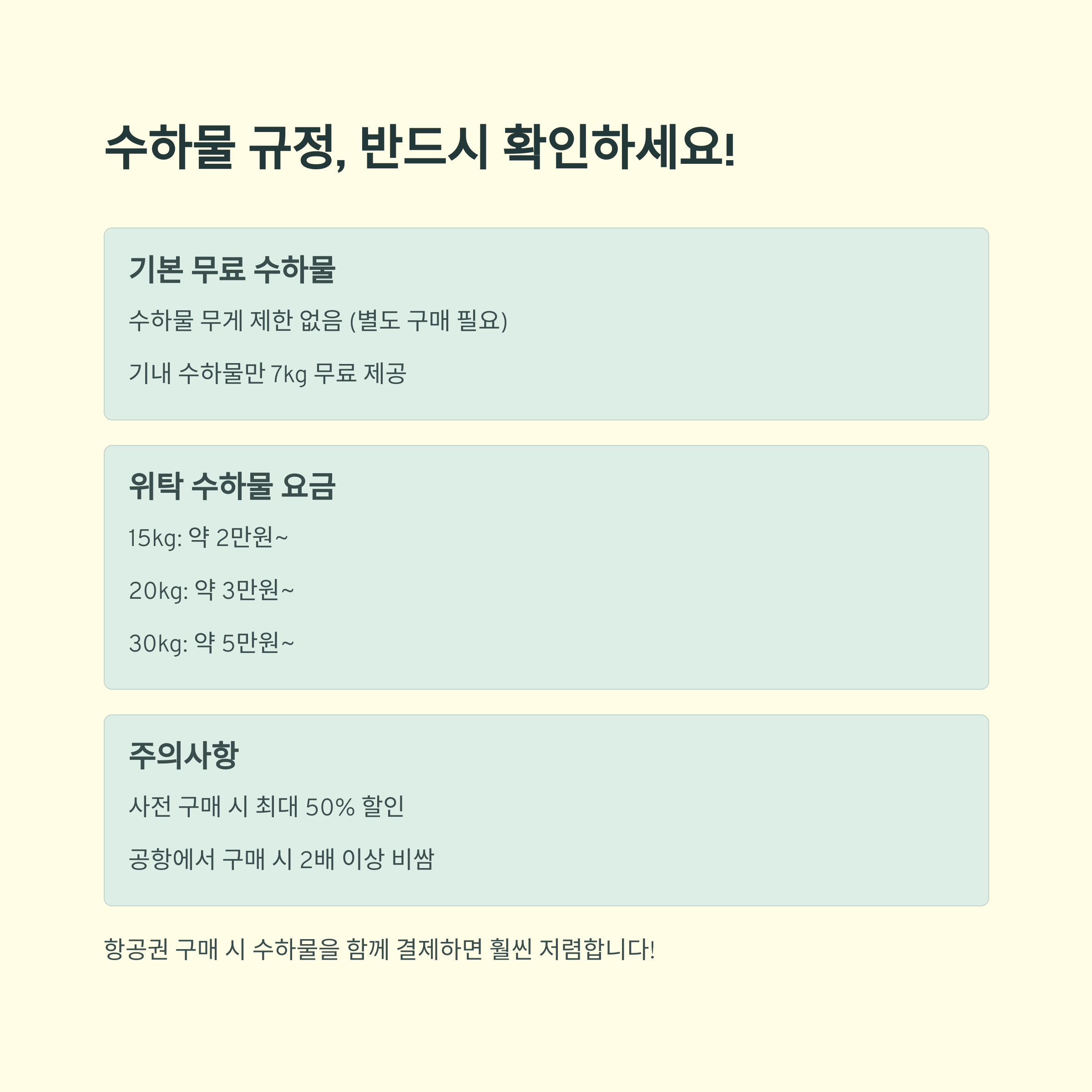 수하물 규정과 추가 요금 주의사항