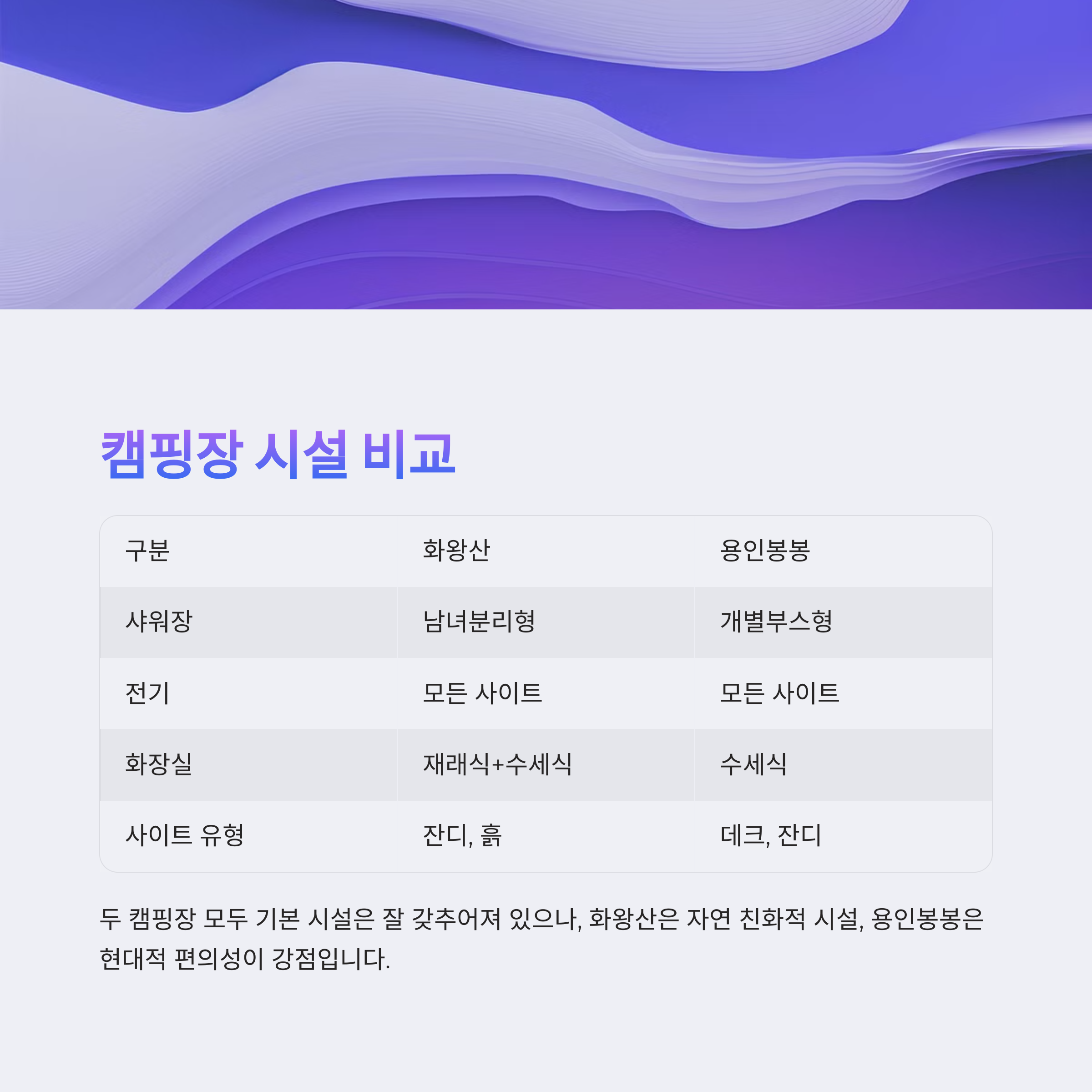 캠핑장 추천 리포트: 화왕산오토캠핑장 vs 용인봉봉캠핑장 실비교